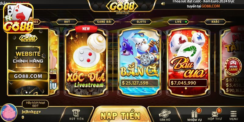 Để tham gia vào Xóc đĩa trên Livestream tại Go88, anh em cần truy cập trang chủ của Go88 đăng nhập vào tài khoản game của mình. Nếu tân binh chưa có tài khoản, hãy đăng ký một tài khoản mới. Sau khi đăng nhập, bet thủ sẽ thấy phần đại diện của các trò chơi, hãy chọn xóc dĩa Livestream rồi tiến hành đặt cược.